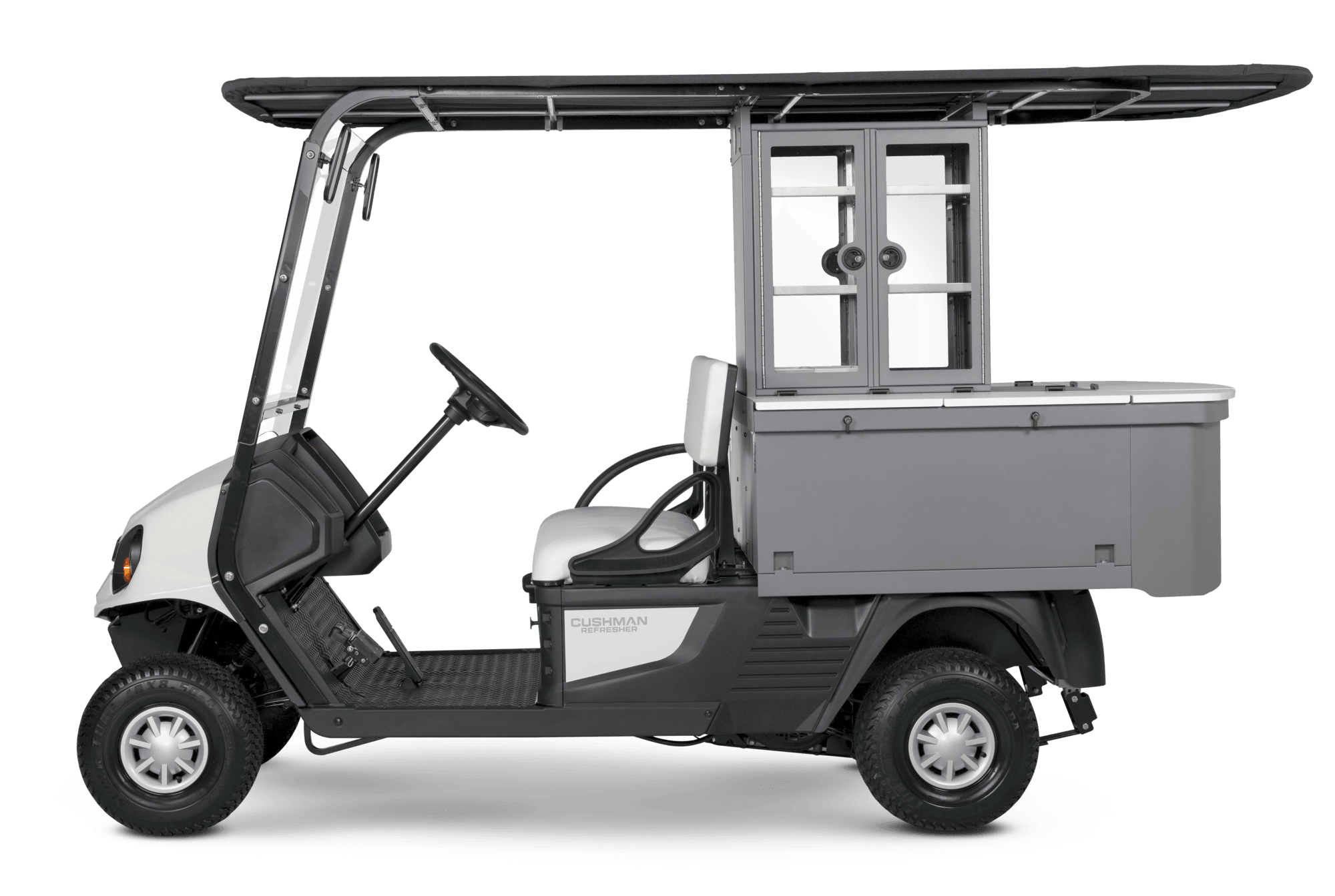 The Refresher Oasis was built for long days and busy events. With its industry-leading can capacity and enough merchandising space for your most popular items, stopping to restock is yesterday's problem. Now available in a 72-Volt AC electric drivetrain or a 13.5hp Kawasaki gas engine.